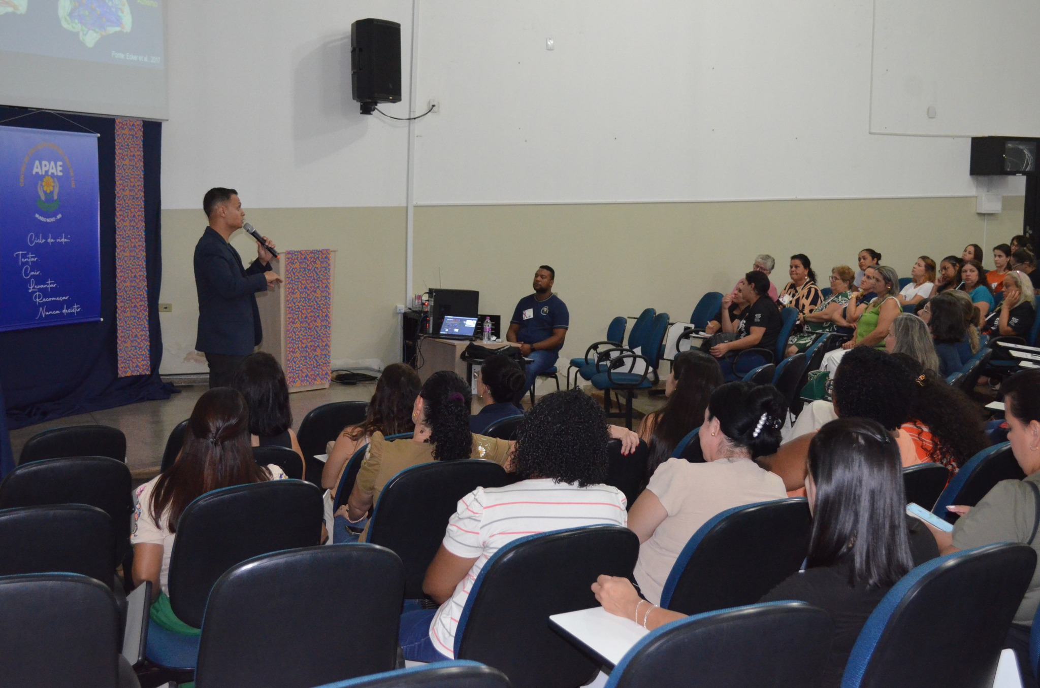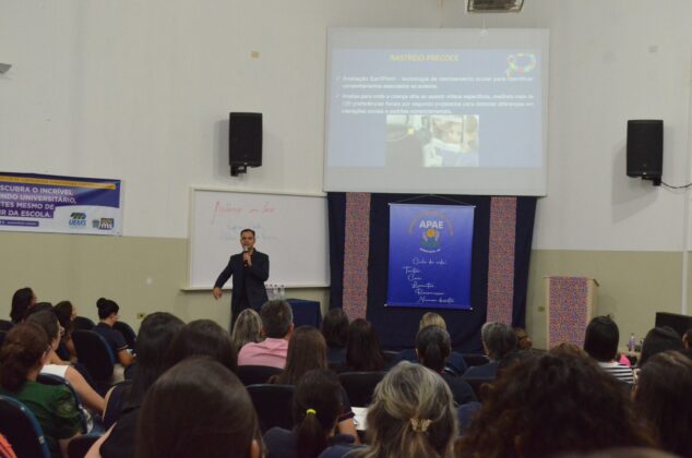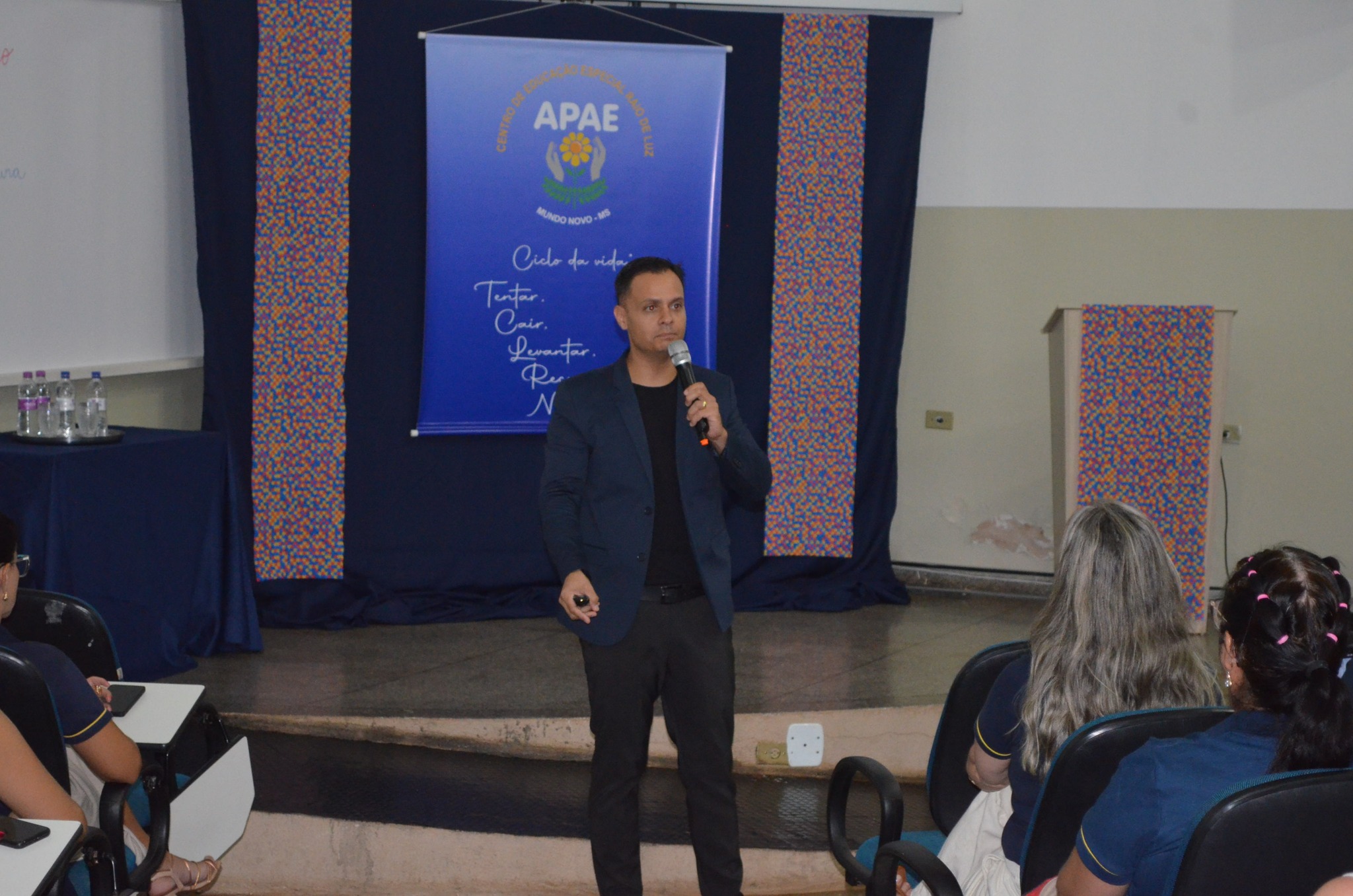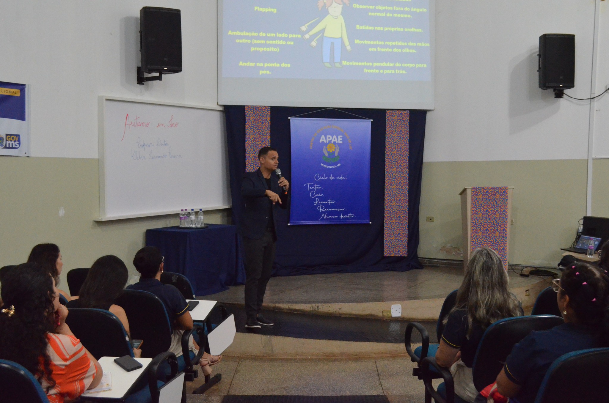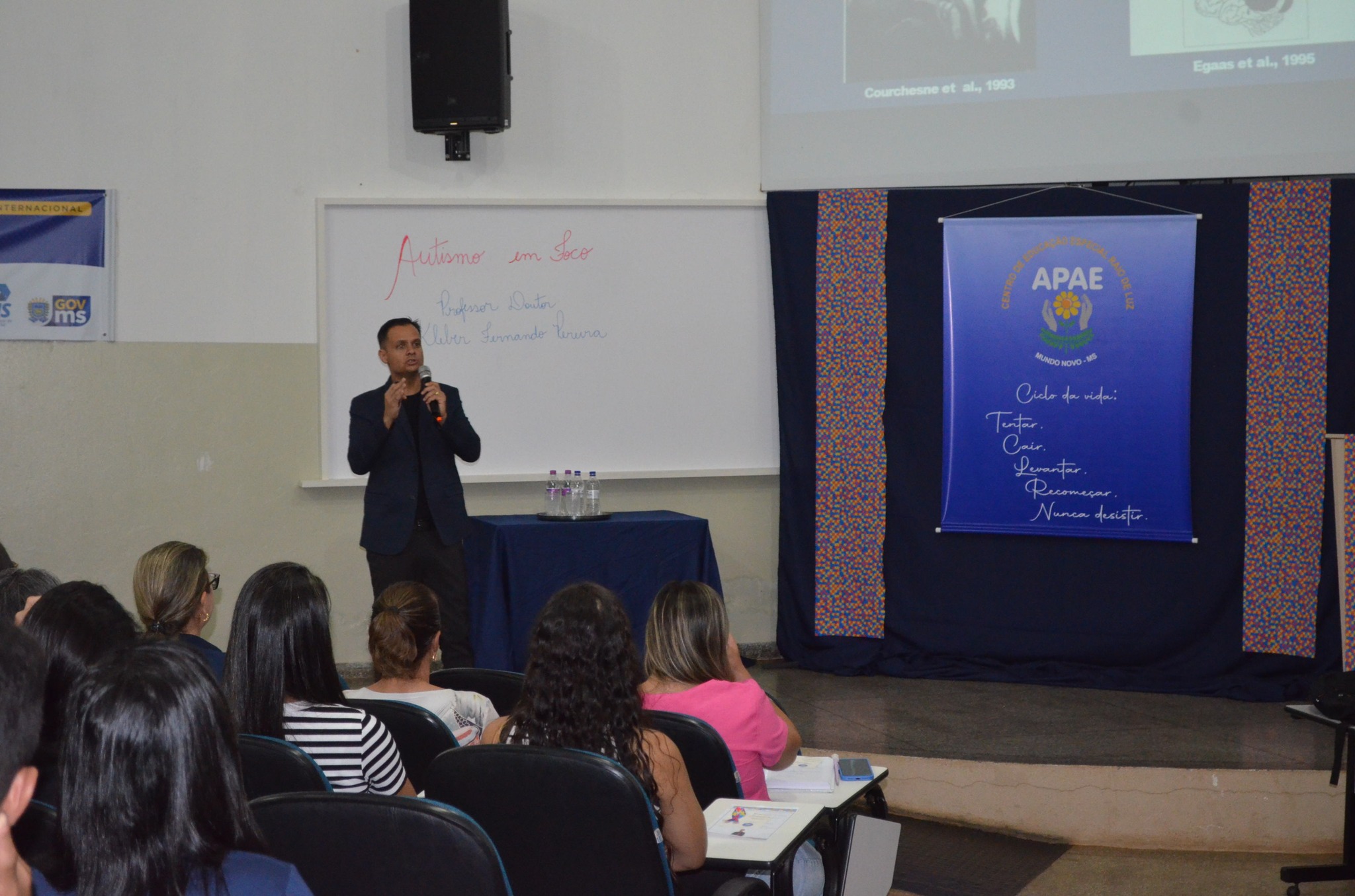 A palestra foi organizada pela APAE, Associação de Pais e Amigos dos Excepcionais de Mundo Novo e recebeu mais de 100 profissionais interessados pelo conteúdo de Neurociência aplicada ao Transtorno do Espectro Autista.