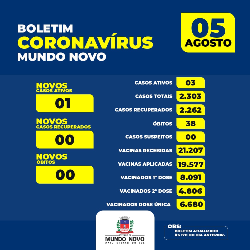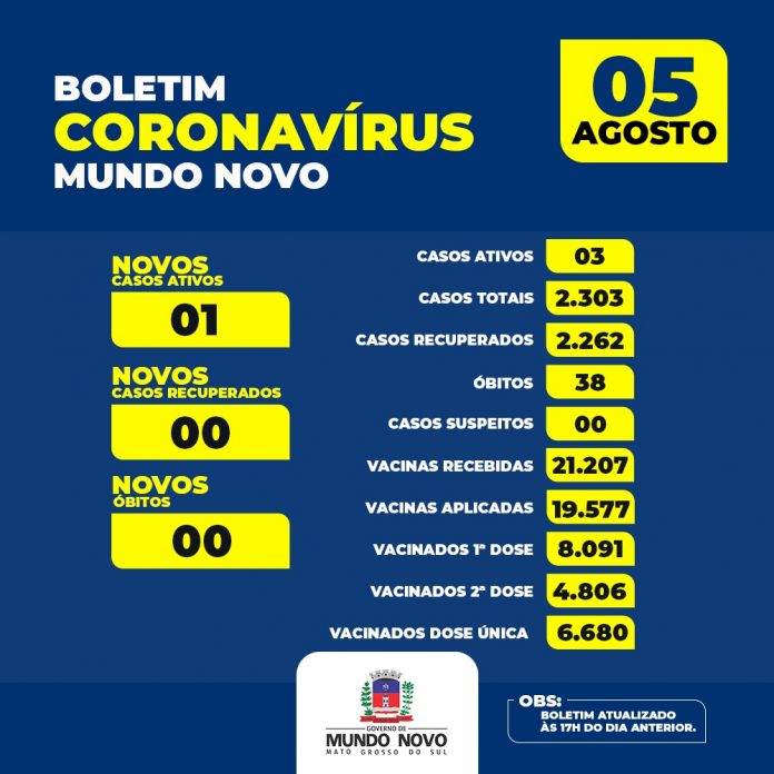Boletim Coronavírus 05/08/21 – Atualizado ás 17h00 do dia anterior