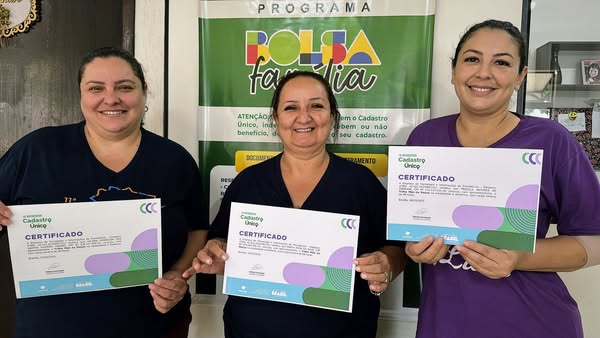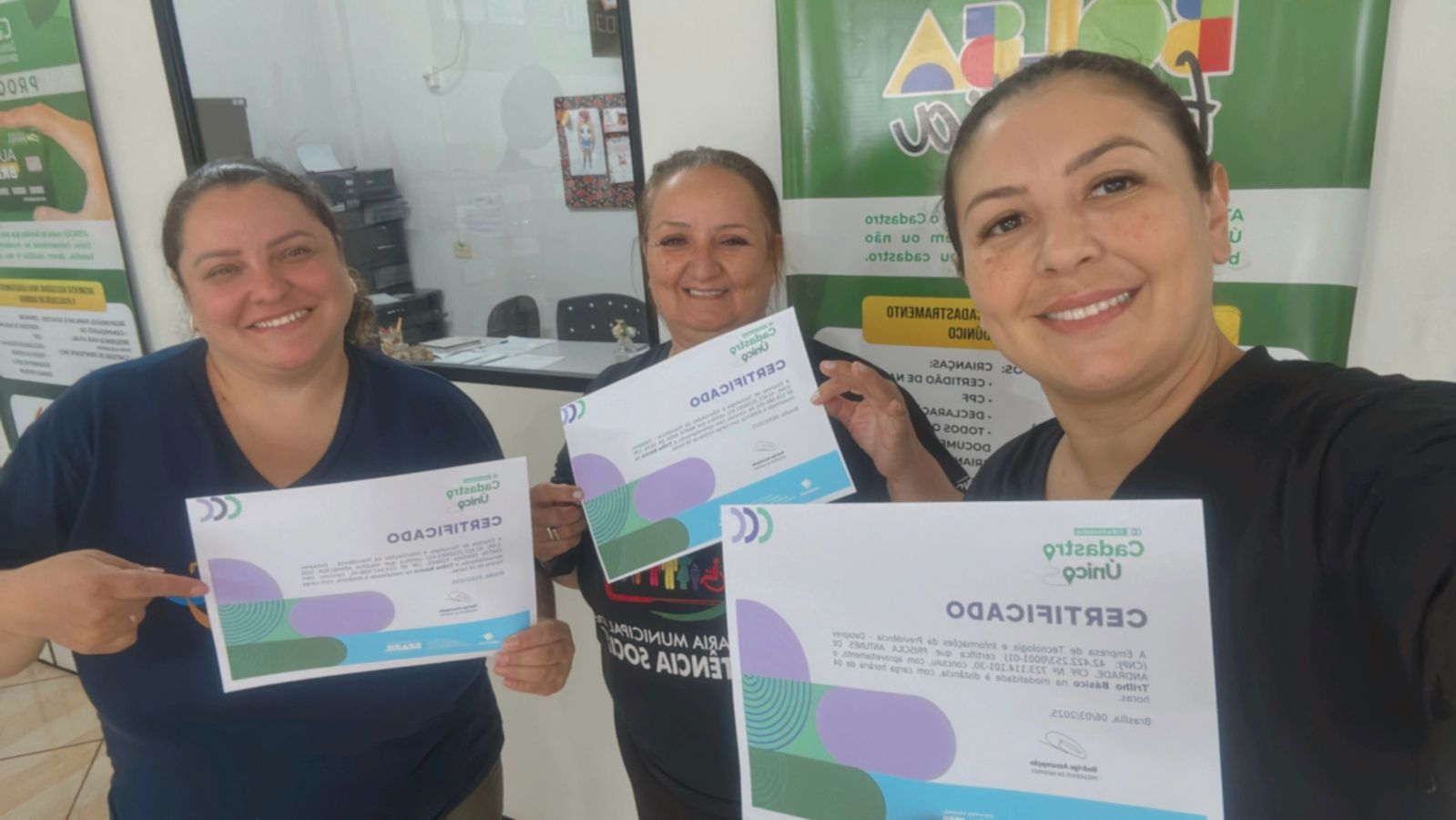 As atendentes receberam o certificado de conclusão do curso de capacitação para o novo portal do Cadastro Único. Antes dessa mudança do governo federal, o acesso acontecia pela Caixa, agora, funciona pelo site do gov.