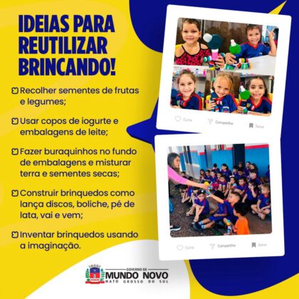 O Governo de Mundo Novo junto com a UVR, Unidade de Valorização dos Recicláveis, apresenta ideias para reutilizar brincando nesta segunda-feira (17).