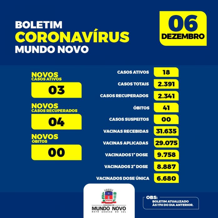 Boletim Coronavírus 06/12/21 – Atualizado às 17h00 do dia anterior