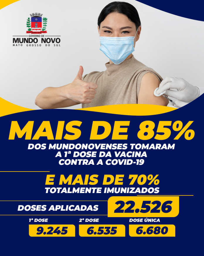 População Vacinada – 9.245 (1ª dose) + 6.535 (2ª dose) + 6.680 (dose única) + 66 (dose de reforço)