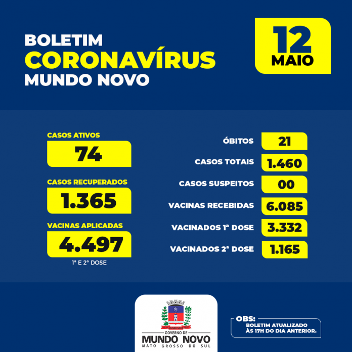 Boletim Coronavírus 12/05/21 – atualizado às 17h00 do dia anterior