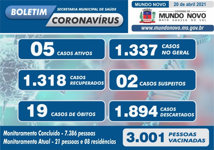 Boletim Coronavírus 20/04/21 – Atualizado às 17h00 do dia anterior