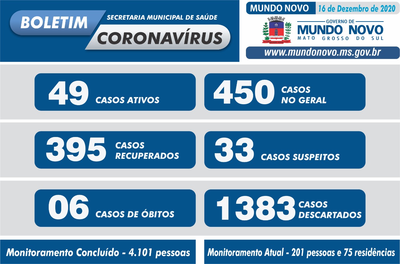 Boletim Coronavírus 16/12/20 – atualizado às 19h00 do dia anterior