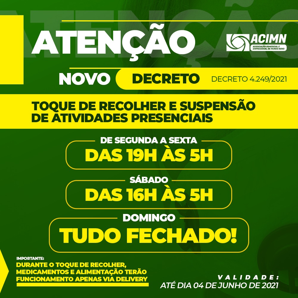 O novo decreto prevê o toque de recolher para este sábado (29) se iniciando às 16h00 e indo até às 5h00 da madrugada de segunda-feira (31).