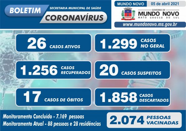 Boletim Coronavírus 05/04/21 – atualizado às 13h00 do dia anterior