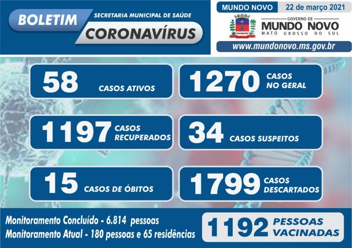 Boletim Coronavírus 22/03/21 – Atualizado às 17h00 do dia anterior