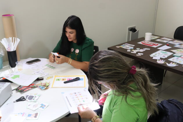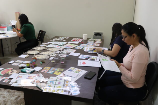 A oficina acontece nesta terça e quarta, para todos os professores especiais dos Centros de Educação Infantil, e em breve aos educadores especiais da escola municipal Terezinha Mendonça e Carlos Chagas.