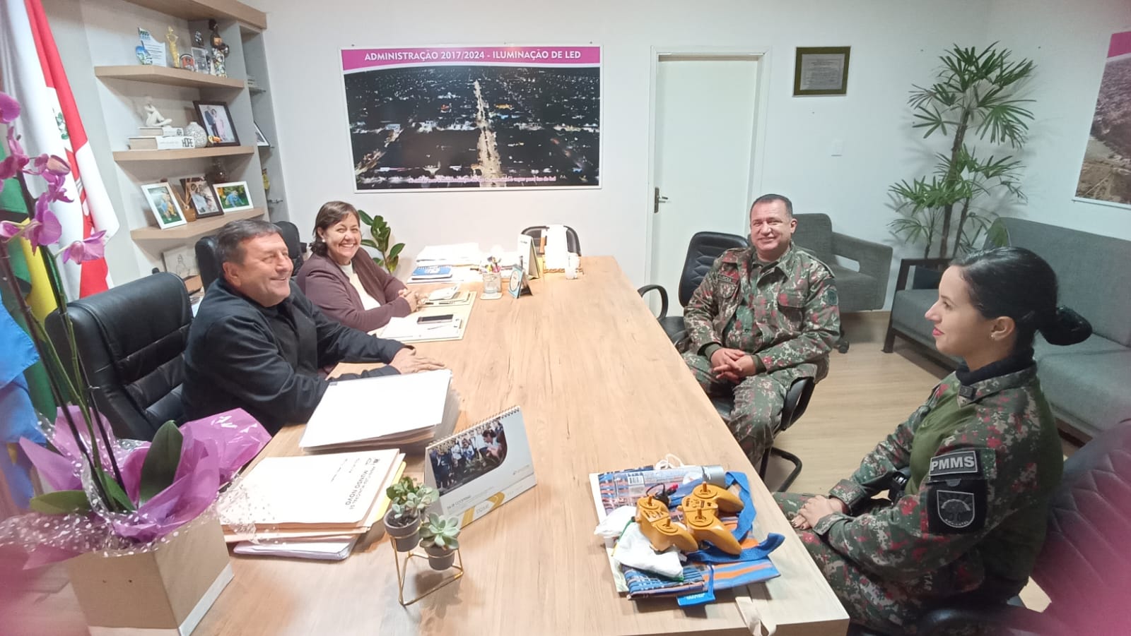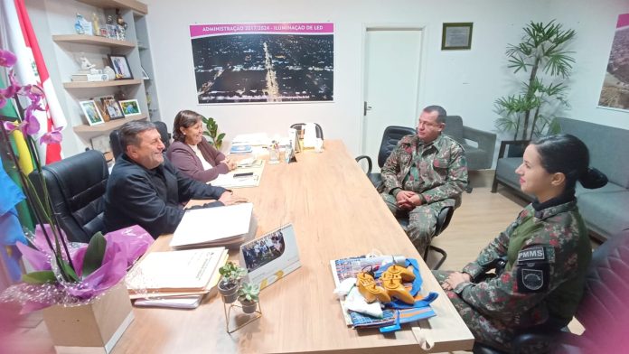 Na tarde desta segunda-feira (25), a prefeita Rosária Lucca Andrade e o vice-prefeito Evaldo Carlos receberam em seu gabinete os policiais da Polícia Militar Ambiental (PMA) de Mundo Novo. Estiveram presentes o Subtenente PM Garcia, o 3° Sargento PM Versuti e a Soldado PM Letícia.