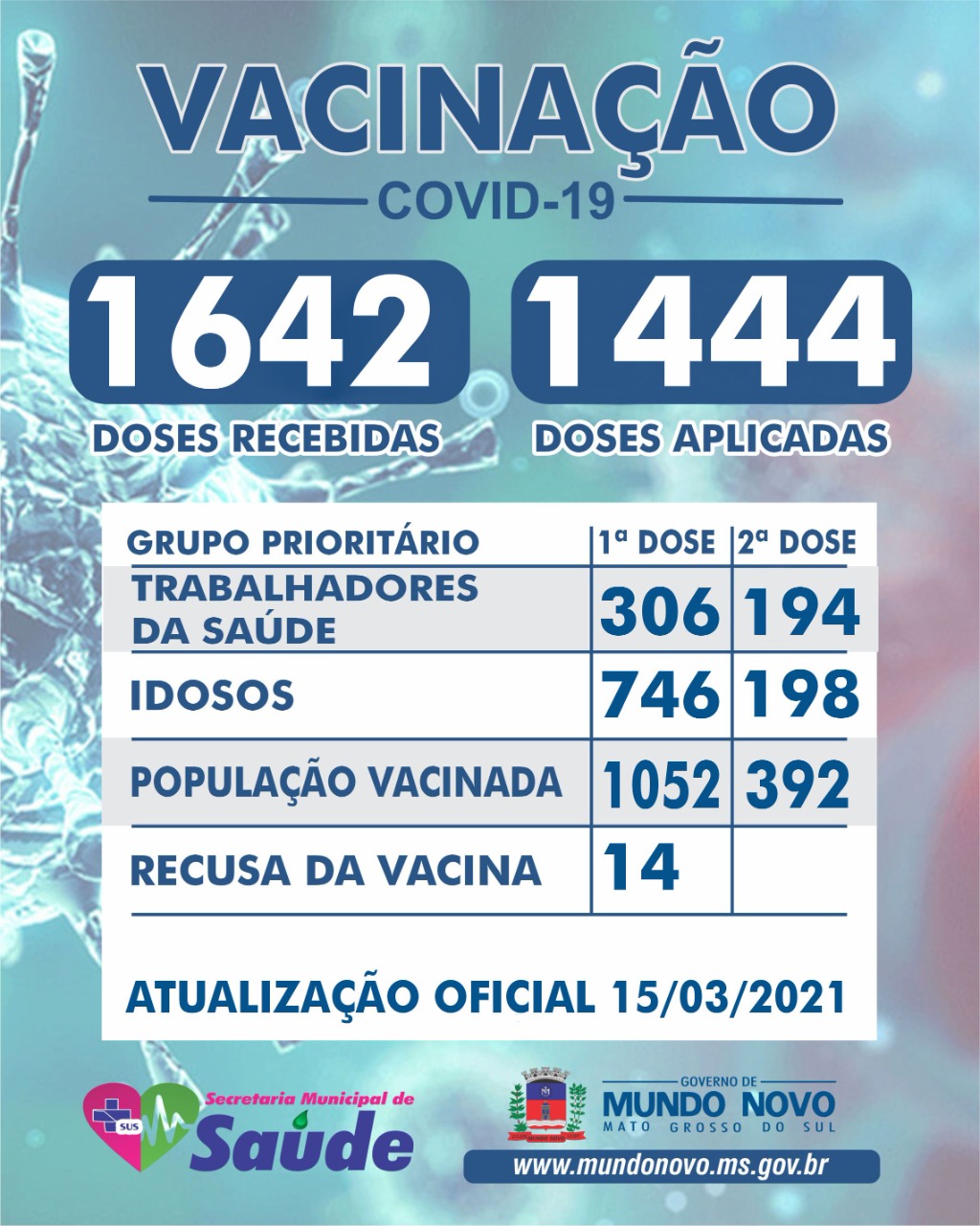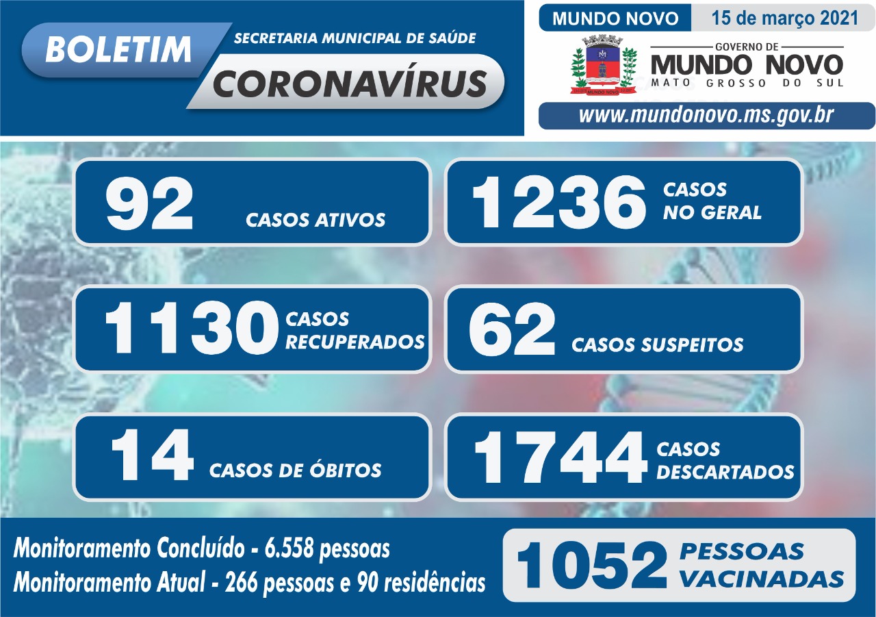 Boletim Coronavírus 15/03/21 – Atualizado às 17h00 do dia anterior
