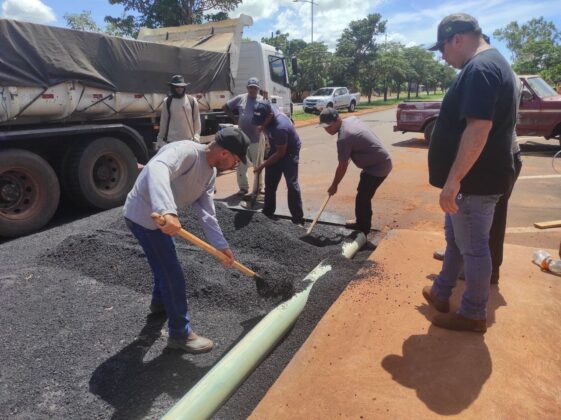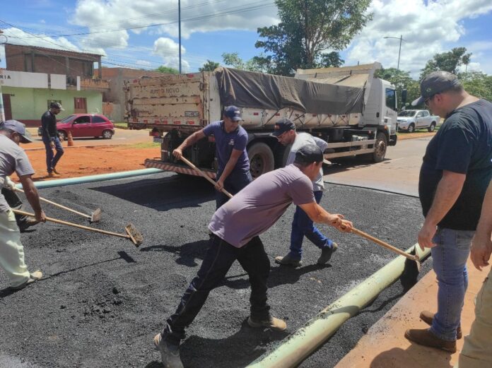 Foi utilizado 20 toneladas de CBUQ (Concreto Betuminoso Usina a Quente), material da Usina Móvel de Asfalto do Consórcio Conisul, com sede em Iguatemi.
