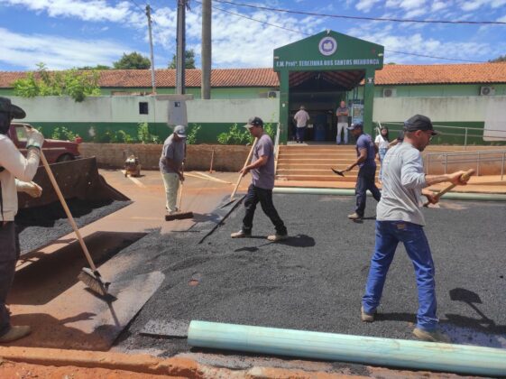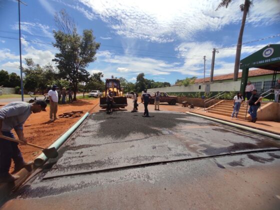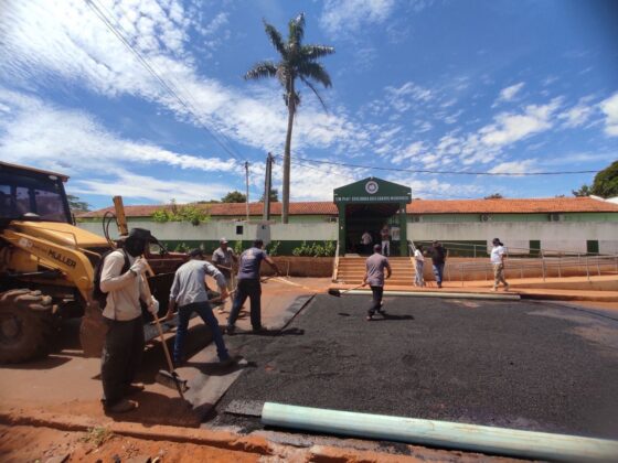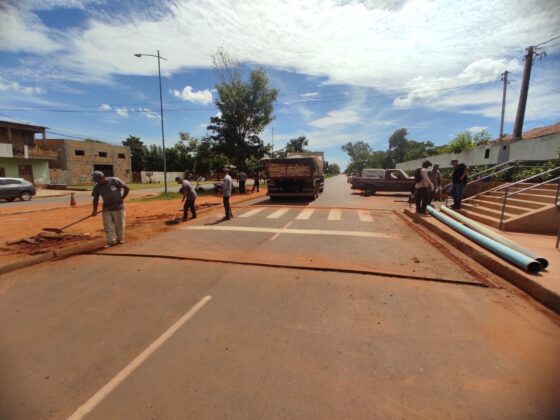 Na manhã desta sexta-feira (28), a equipe da Secretaria Municipal de Obras de Mundo Novo realiza a construção de passagens elevada em frente à escola Terezinha Mendonça, localizado na Avenida Otaviano Corrêa.