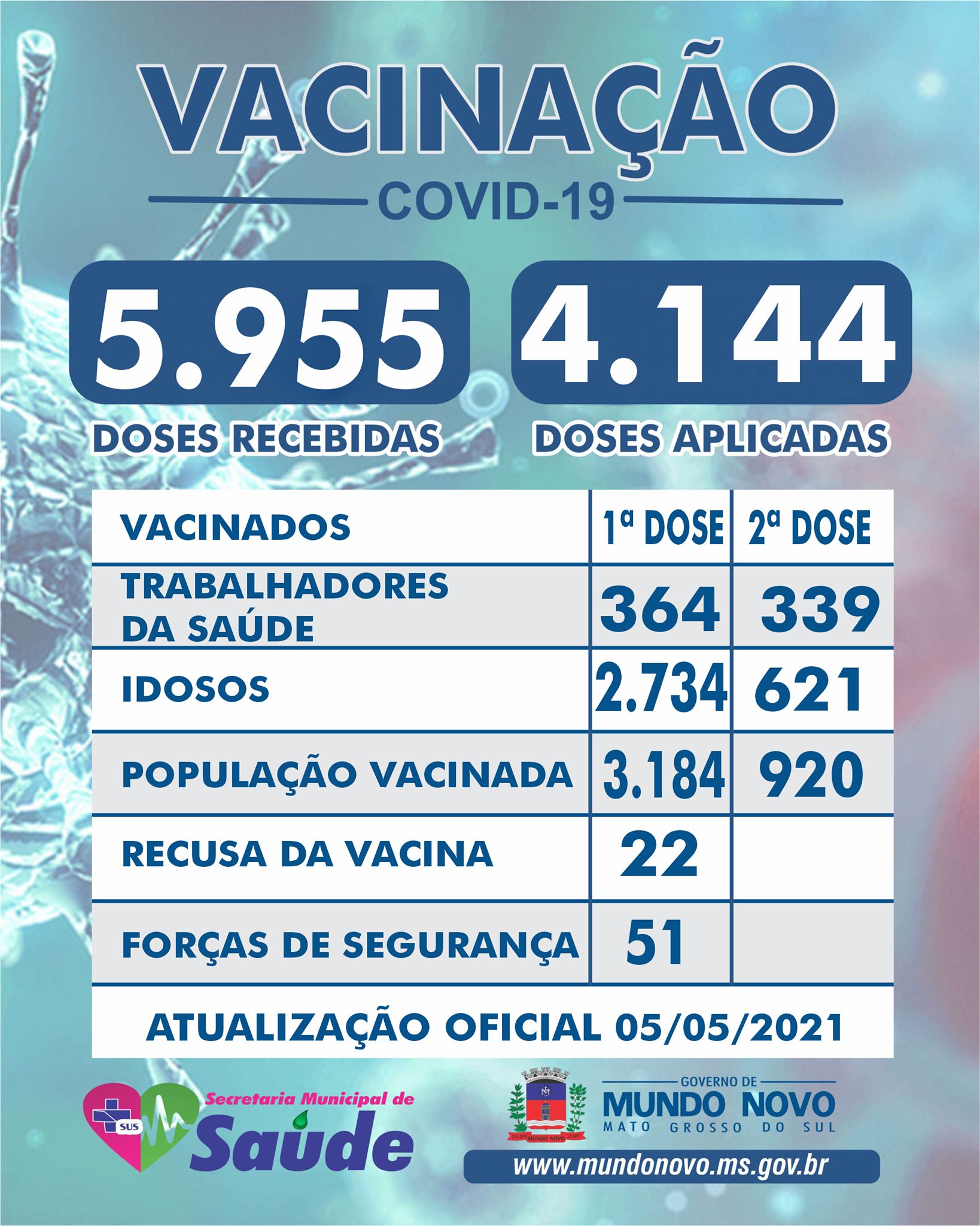 Obs. A partir deste momento, as informações sobre o número de vacinados deve ser verificado pelo https://www.saude.ms.gov.br/e-vacine/